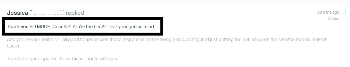 “I love her genius mind – she always has an answer that aligns with my needs!”